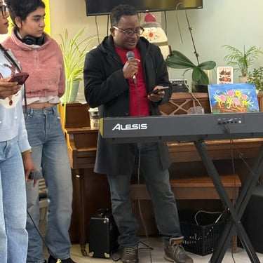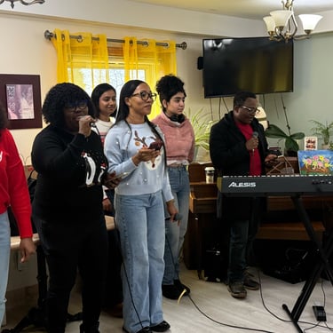 A senior asked if she could offer a special rendition of “O Come All Ye Faithful.” With a voice shaped by years of life, faith, and endurance, she sang, not perfectly, but powerfully. Every word carried meaning. Every note felt sacred. The room grew still as her song echoed, singers sang along, pianist accompanied.